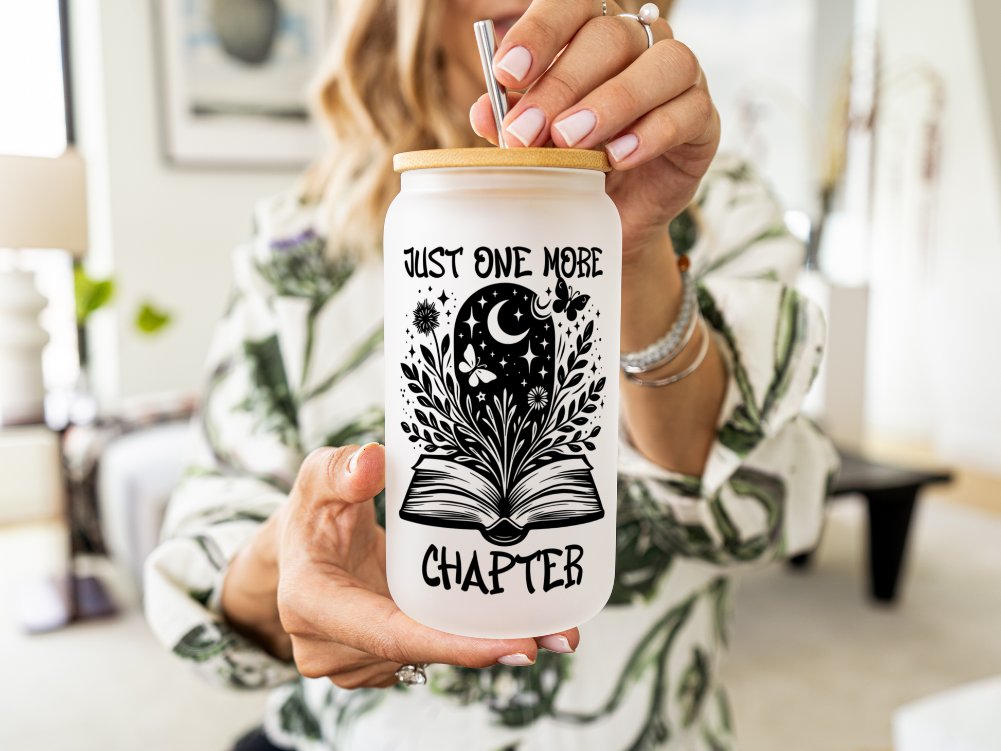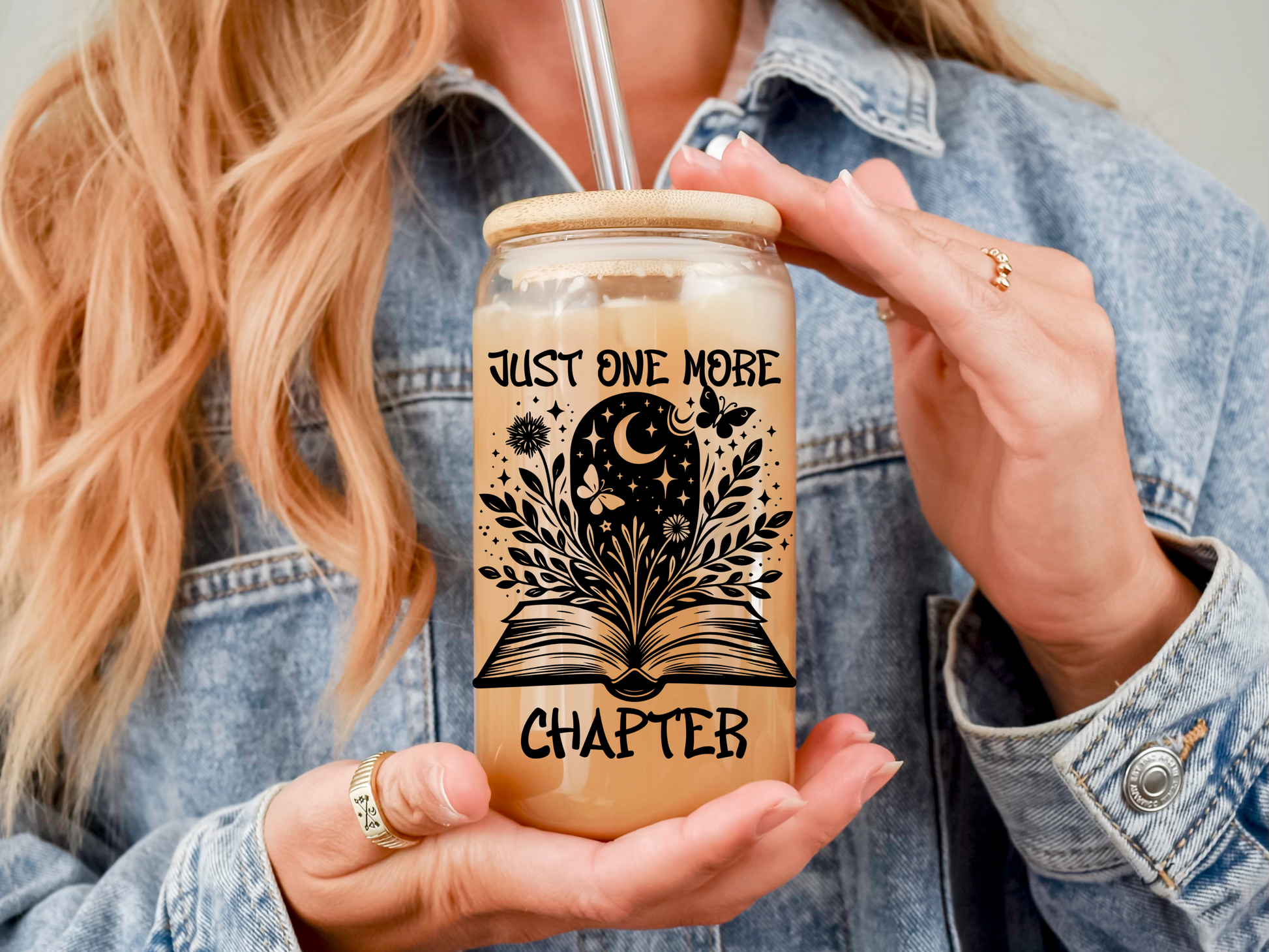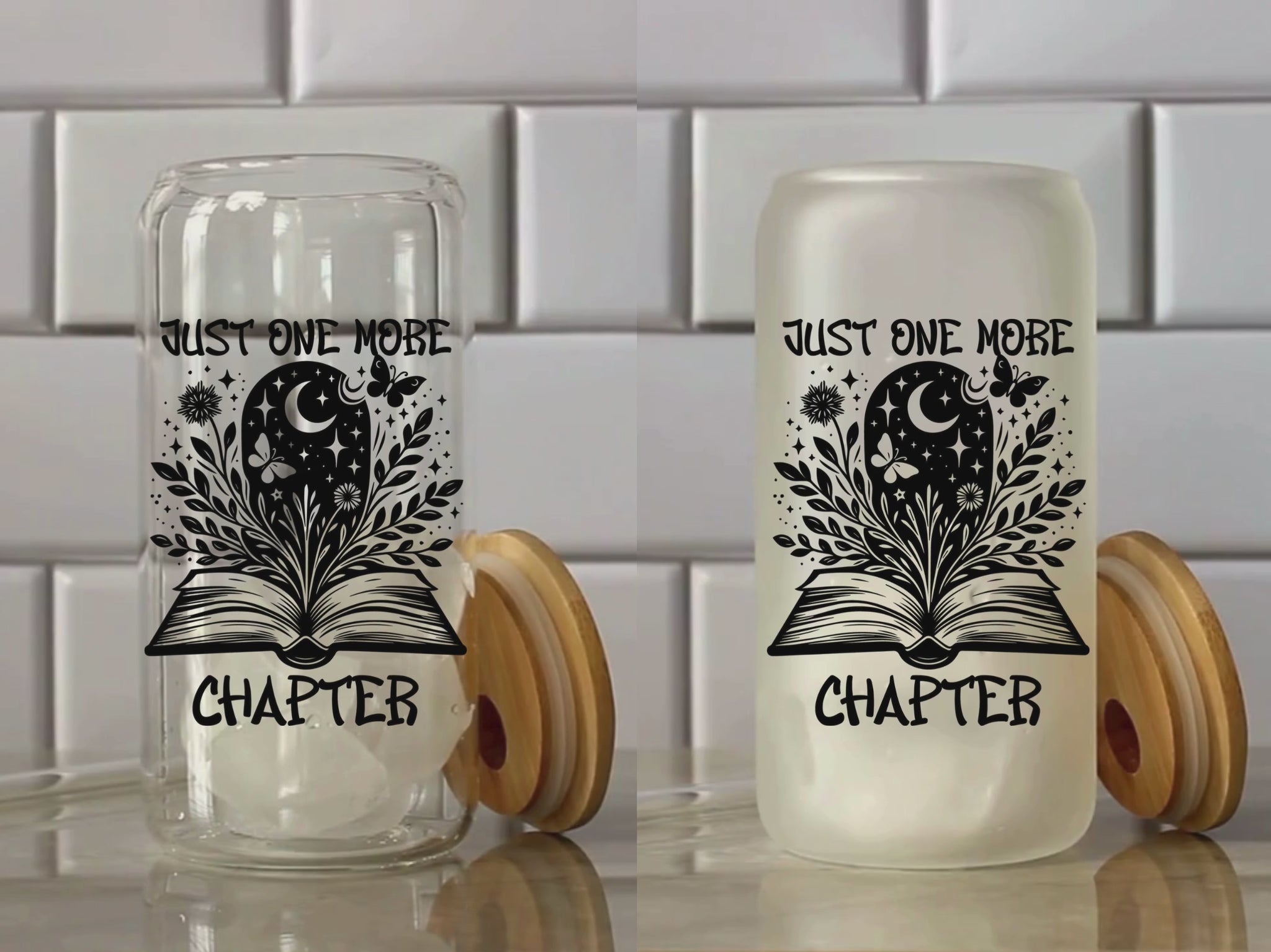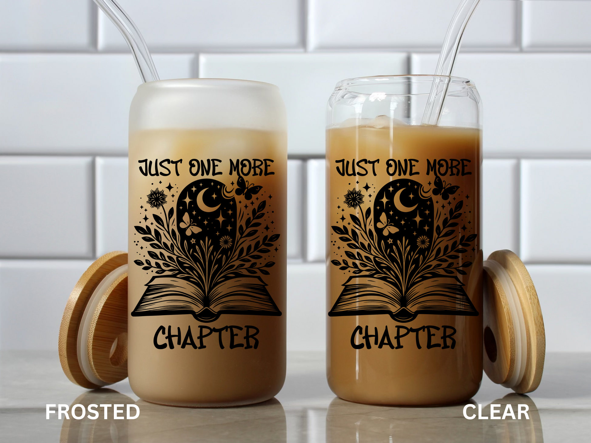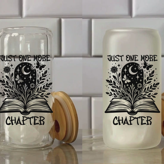 Just One More Chapter 16oz Glass Tumbler With Lid and Straw, Book Lover Gift, Reader Gift, Book Club Gift for Her, Book Lovers Iced Coffee Cup, Book Lovers Cup